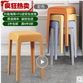 华盛H480 桌前椅 可叠放方凳加厚软坐垫休闲凳轻奢餐凳高板凳简约时尚凳创意北欧方 【驼色】升级PU皮+海绵软坐垫-高48CM 承重260斤