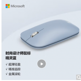 微软/Microsoft VR40 鼠标 时尚设计师鼠标 精灵蓝 便携鼠标 超薄轻盈 金属滚轮 蓝牙4.0 蓝影技术 办公鼠标