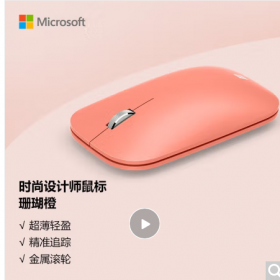 微软/Microsoft VR40 鼠标 时尚设计师鼠标 珊瑚橙 便携鼠标 超薄轻盈 金属滚轮 蓝牙4.0 蓝影技术 办公鼠标