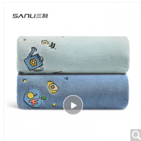三利/SANLI 100016972039 运动毛巾 刺绣毛巾强吸水A类可爱风居家日用速干大毛巾2条 35*75cm 85G 湖蓝+天蓝