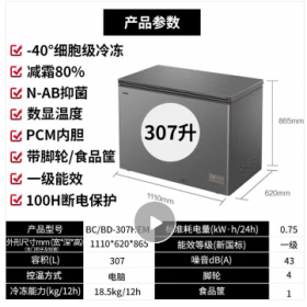 海尔/Haier HR307 冷藏柜 冰柜家用无需除霜商用大容量1冷冻卧式超低温速冻柜 零下40度超低温/307升/307HEM