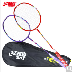 红双喜/DHS E-S46 羽毛球拍套装可水洗四星双拍学生儿童球拍细手柄含尼龙球手胶拍包E-S46