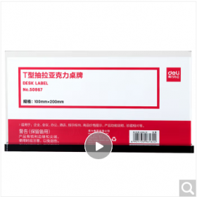 得力/deli 50867 铭牌 亚克力T型台卡台签台牌桌签双面透明桌牌展示牌酒水牌 小号(100*200mm) 50867