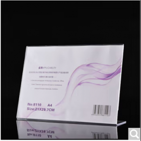 和日升 8110 铭牌 台卡台牌桌签展示牌 商品标价签L型台签透明亚克力台卡\\\\/展示桌立牌桌牌架价签 A4横(8110) 21*29.7cm 透明