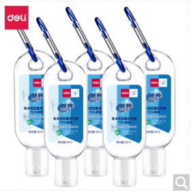 • 得力/deli 31005-5 多用途清洁剂 75%酒精免水洗洗手液 带挂扣便携 30ml/瓶 5瓶装 31005-5