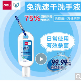 • 得力/deli 31005 多用途清洁剂 便携式免水洗抗菌洗手液 75%酒精消毒防护便携杀菌乙醇喷雾 便携式洗手液 30ml/瓶 31005
