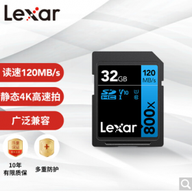 雷克沙/Lexar LSD0800032G-BNNNC U盘/存储卡 32GB SD存储卡 读120MB/s U1 V10 高速性能 随心畅拍(800x)
