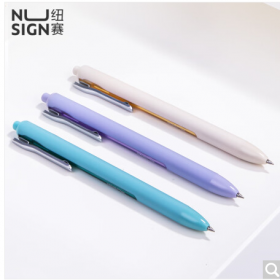 得力/deli 33763 书写用笔类用具纽赛全新科技双色包胶臻顺滑按动中性笔0.5mm子弹头黑色3支/盒 33763