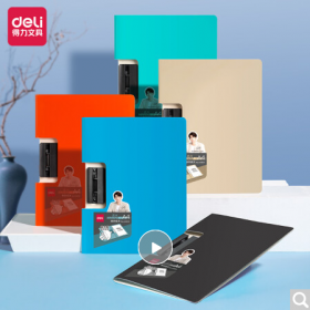 得力/deli PE102 文件夹 因为遇见你悬停竖式折页板夹 一键开合强力会议夹文件夹 乐谱合同诗朗诵夹板 PE102混色