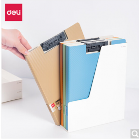 得力/deli 64859 文件夹 因为遇见你悬停竖式折页板夹 强力会议夹文件夹 64859混色