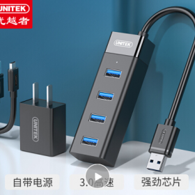 优越者/UNITEK Y-3098CBK 数据线 USB分线器带电源 高速hub集线器3.0 笔记本电脑一拖四usb扩展器多接口1.2米Y-3098CBK