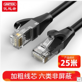 优越者/UNITEK C816FBK 数据线 六类网线 Cat6千兆网络非屏蔽连接线 工程家用光纤宽带路由器8芯双绞跳线 C816FBK 25米