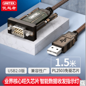 优越者/UNITEK U203A 数据线 usb转串口线 免驱 rs232转DB9针串口线1.5米 打印机/扫描仪/收银机/电子秤com口调试线U203A