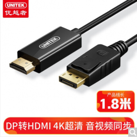优越者/UNITEK V607ABK 数据线 DP转HDMI转换线 DisplayPort转HDMI公对公连接线 电脑电视4K超清视频转换线1.8米 V607ABK