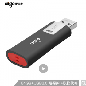 爱国者/Aigo 64GB USB2.0 U盘/存储卡 U盘 L8202写保护 黑色 防病毒入侵 防误删