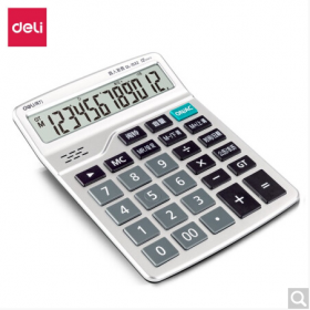 得力/deli 2137 电子计算器 双电源电脑按键计算器 12位金属面板桌面计算机 财务及银行人员适用 办公用品 银色2137
