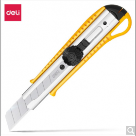得力/deli 2044 美工刀 金属美工刀 旋钮锁定功能尾部可折 办公用品 黄色2044