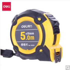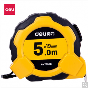 得力/deli 79555 卷尺 5m×19mm带包胶双面刻度公英双制钢卷尺 黄色79555