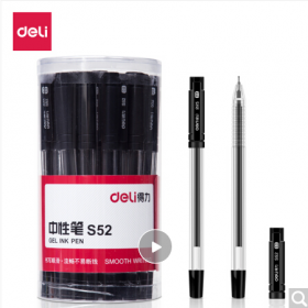 得力/deli s52 书写用笔类用具 0.5mm半针管中性笔办公水笔 黑色签字笔30支/桶s52