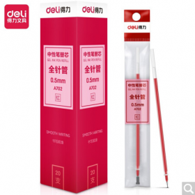 得力/deli A702 书写用笔类用具 0.5mm全针管红色中性笔笔芯 水笔签字笔替芯20支/盒A702