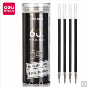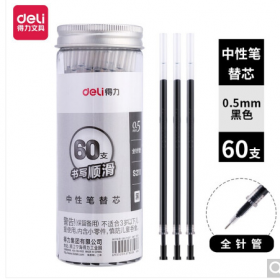 得力/deli 33165 书写用笔类用具 臻顺滑中性笔芯签字笔替芯 办公用品 0.5mm子弹头60支/桶33165