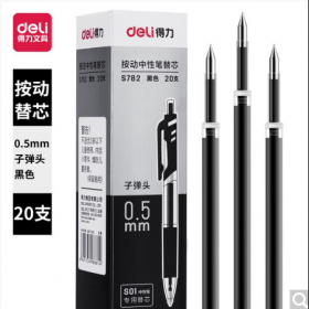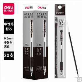 得力/deli S01 书写用笔类用具 0.5mm按动中性笔芯替芯 S01 K35用 黑色子弹头20支/盒 办公用品