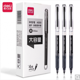 得力/deli A500 书写用笔类用具 大容量中性笔无印风签字笔 学生考试笔 ins冷淡风 0.5mm加强针管 12支/盒DL-A500