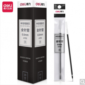 得力/deli A702 书写用笔类用具 0.5mm全针管黑色中性笔笔芯 水笔签字笔替芯20支/盒A702
