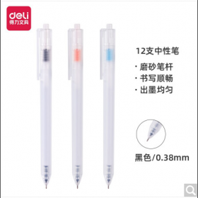 得力/deli A115 书写用笔类用具 雾透按动中性笔 简约无印风 0.38mm全针管12支/盒DL-A115