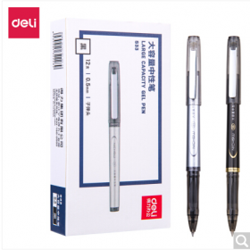 得力/deli s33 书写用笔类用具 0.5mm黑色碳素大容量中性笔 办公用品 水笔签字笔12支/盒s33
