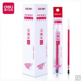 得力/deli S761 书写用笔类用具 0.7mm中性笔芯子弹头替芯 办公用品 红色20支/盒JD-S761
