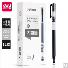 得力/deli A566 书写用笔类用具 大容量中性笔4倍书写 大容量签字笔 0.5mm子弹头12支/盒A566黑