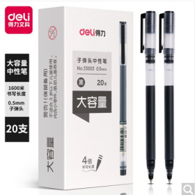 得力/deli 33003 书写用笔类用具 大容量中性笔4倍书写 大容量签字笔 0.5mm子弹头20支/盒DL-33003黑