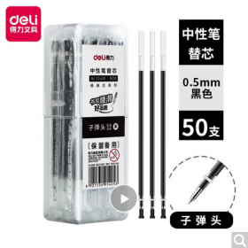 得力/deli 33405书写用笔类用具 0.5mm黑色子弹头中性笔芯 水笔签字笔替芯 50支/桶33405 办公用品