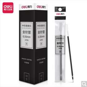 得力/deli a700 书写用笔类用具 0.35mm全针管黑色中性笔笔芯 水笔签字笔替芯20支/盒a700