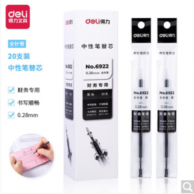 得力/deli 6922 书写用笔类用具 0.28mm中性笔芯替芯 财务专用 办公用品 全针管20支/盒6922