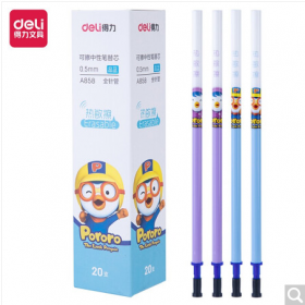 得力/deli A858 书写用笔类用具 0.5mm啵乐乐联名魔力热可擦笔替芯 学生全针管中性笔水笔签字笔替芯 晶蓝 20支/盒A858