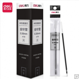 得力/deli a701 书写用笔类用具 0.38mm全针管黑色中性笔笔芯 水笔签字笔替芯20支/盒a701