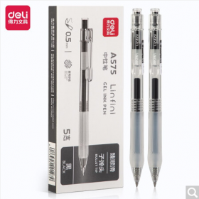得力/deli A575 书写用笔类用具 臻顺滑按动中性笔无印风签字笔 学生办公笔 ins冷淡风 0.5mm子弹头 5支/盒DL-A575