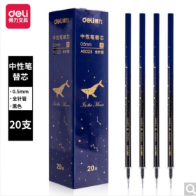得力/deli A5023 书写用笔类用具 星海鲸梦中性笔芯 学生签字笔替芯 0.5mm全针管 20支/盒A5023