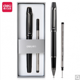 得力/deli S153 书写用笔类用具 金属宝珠笔套装 中性笔签字笔套装 附1支笔芯 0.5mm子弹头S153黑