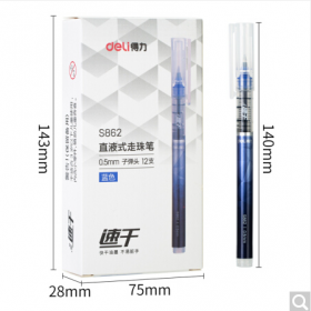得力/deli S862 书写用笔类用具 子弹头直液笔走珠签字笔 办公学生中性笔会议笔 0.5mm12支/盒S862蓝