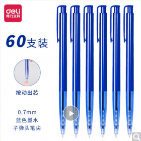 得力/deli 6506 书写用笔类用具 0.7mm按动60支圆珠笔中油笔 蓝色原子笔6506