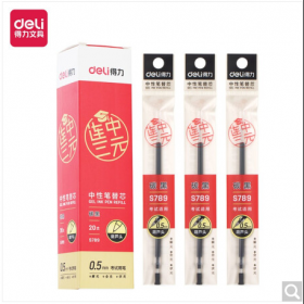 得力/deli s789 书写用笔类用具 连中三元0.5mm考试中性笔芯替芯 葫芦头黑色20支/盒s789