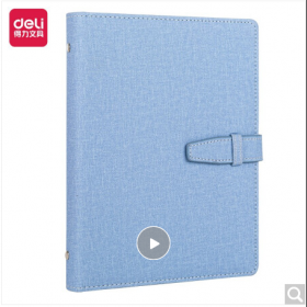 得力/deli 3309 薄本册 25K100张时尚活页扣带皮面本 商务办公插袋记事本日记本笔记本子 蓝色3309