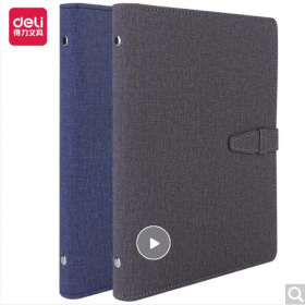 得力/deli 3309 薄本册 25K100张时尚活页笔记本子文具 商务办公插袋记事本日记本扣带皮面本办公用品 1本蓝灰随机3309