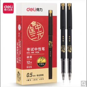 得力/deli s125 书写用笔类用具 连中三元考试中性笔 黑色 签字笔 0.5mm子弹头12支/盒s125