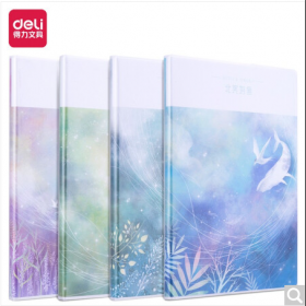 得力/deli T16128 薄本册 4本16K128张北冥有鱼-鲸鸟系列加厚学生胶套本套装 软抄本记事本日记本笔记本子文具 T16128-01DW