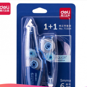 得力/deli 71504 修正液/修正带/修正贴 1+1 6m可换芯笔型修正带 顺滑不断带改正带 强力遮盖涂改带 蓝色 71504
