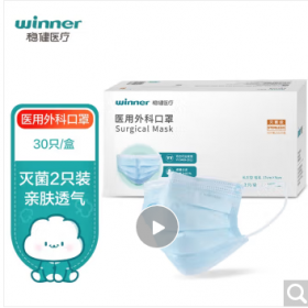 稳健/Winner 604-007395-01 防护口罩 外科口罩灭菌级30只/盒 一次性成人挂耳式三层过滤防细菌防飞沫 出行便携款2只/袋
